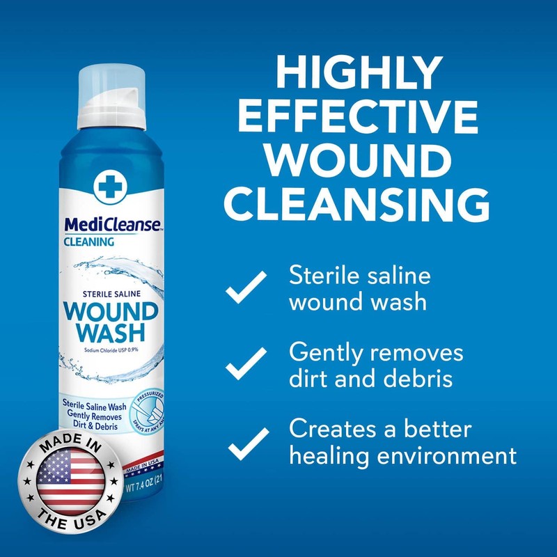 - Promotes Healing: MediCleanse sterile saline wound wash aids in the removal of debris, dirt and foreign material from wounds and promotes healing