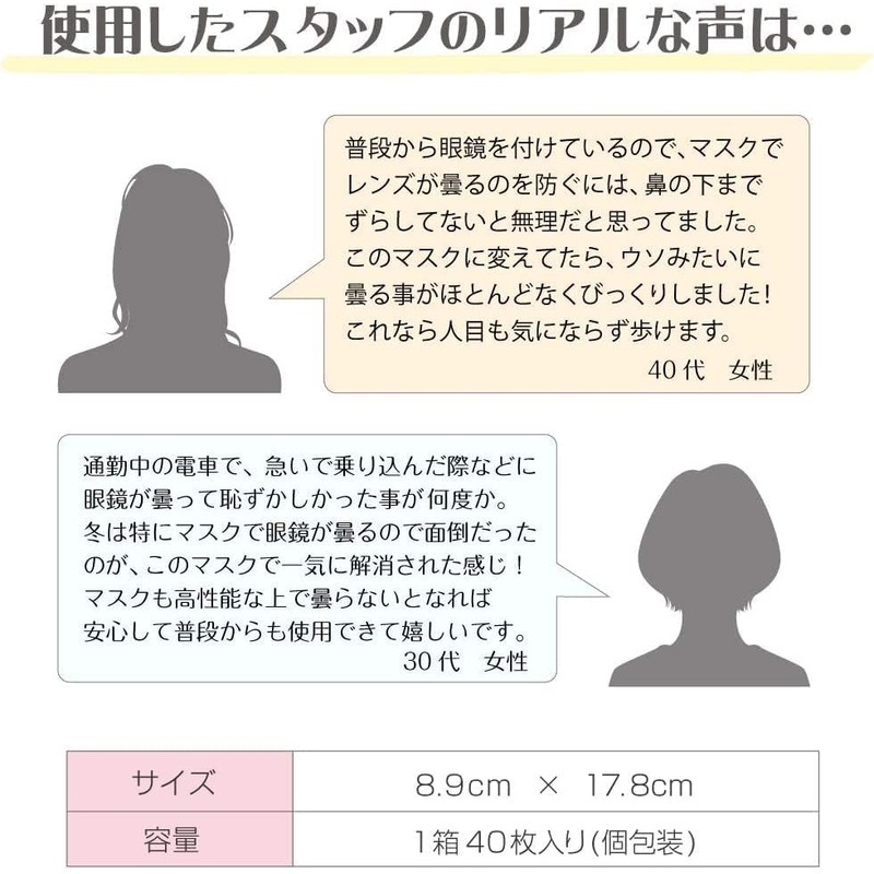 Medicom Japan Anti-fog Mask for Glasses, Regular Size, 40 Pieces