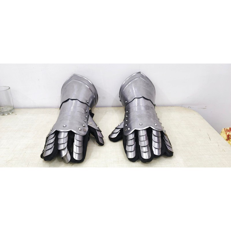 Medieval Gauntlets Armor Metal Knight Warrior Gothic Gauntlet Fantasy Cosplay Armor Reenactment Tactical Fully Functional Adult Size Handmade Costume SCA LARP (Silver)