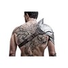 This gladiator's shoulder is handcrafted with 18 gauge thick steel and sectioned into 3 parts.