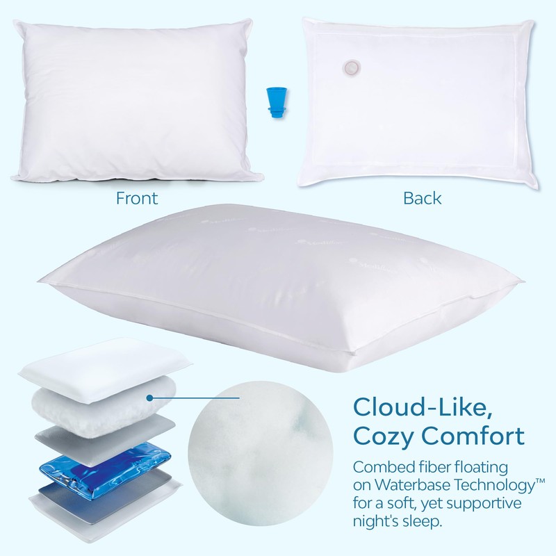 - FULLY ADJUSTABLE FOR ALL SLEEPING POSITIONS: Mediflow's adjustable pillow lets you control firmness and height for a personalized fit. The unique Waterbase design makes it the perfect bed pillow for side sleepers, back sleepers, and stomach sleepers.