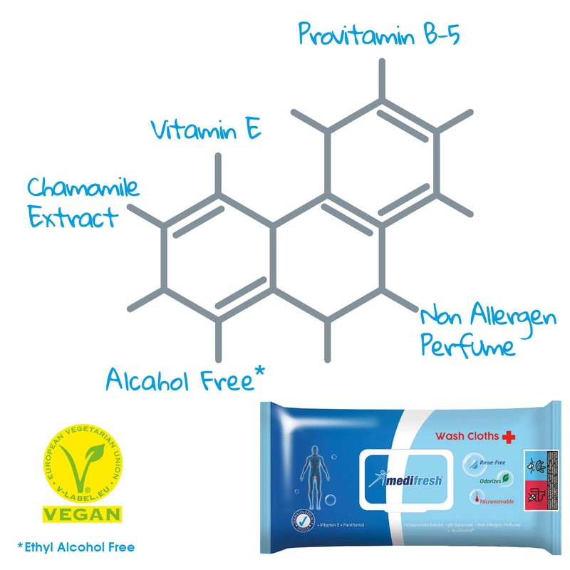 Medifresh Adult Wet Wipes, Rinse-Free, Microwavable, Wash Cloths with Chamomile Extract and Vitamin E, Large Wipes (1 Pack/ 60 Count)
