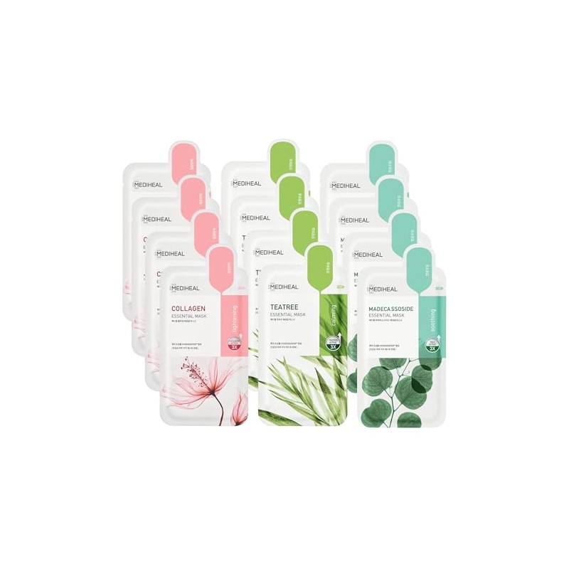 The Mediheal 12-Pack Essential HERO Sheet Mask Set includes Collagen, Tea Tree, and Madecassoside masks to hydrate, soothe, and target blemishes. Ideal for all skin types, this set helps improve skin balance, firmness, and clarity for a healthier complexion.