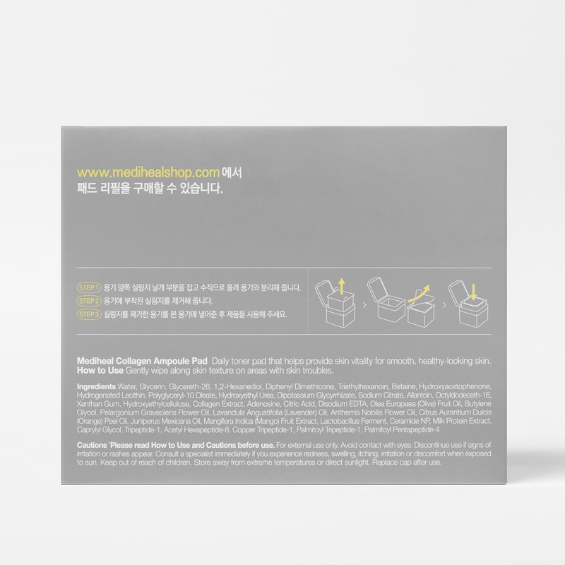 - ?[COLLAGEN PADS] : Collagen Ampoule Pad to help improve skin depression in multiple facial areas, including the eye area, cheeks, and around smile lines.