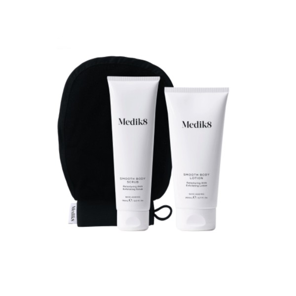 The Medik8 Smooth Body Exfoliating Kit Trio is a 3-step exfoliating kit that instantly revitalizes rough, dry, or bumpy skin.