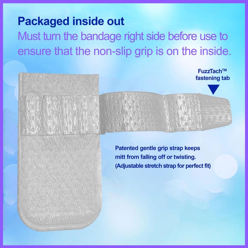 • WITHOUT ABSORBENT PAD INSIDE MITT Sleek design with no extra bulk, just soft coverage. Comfort fit that is great for covering a pre-bandaged finger and protecting wounds.