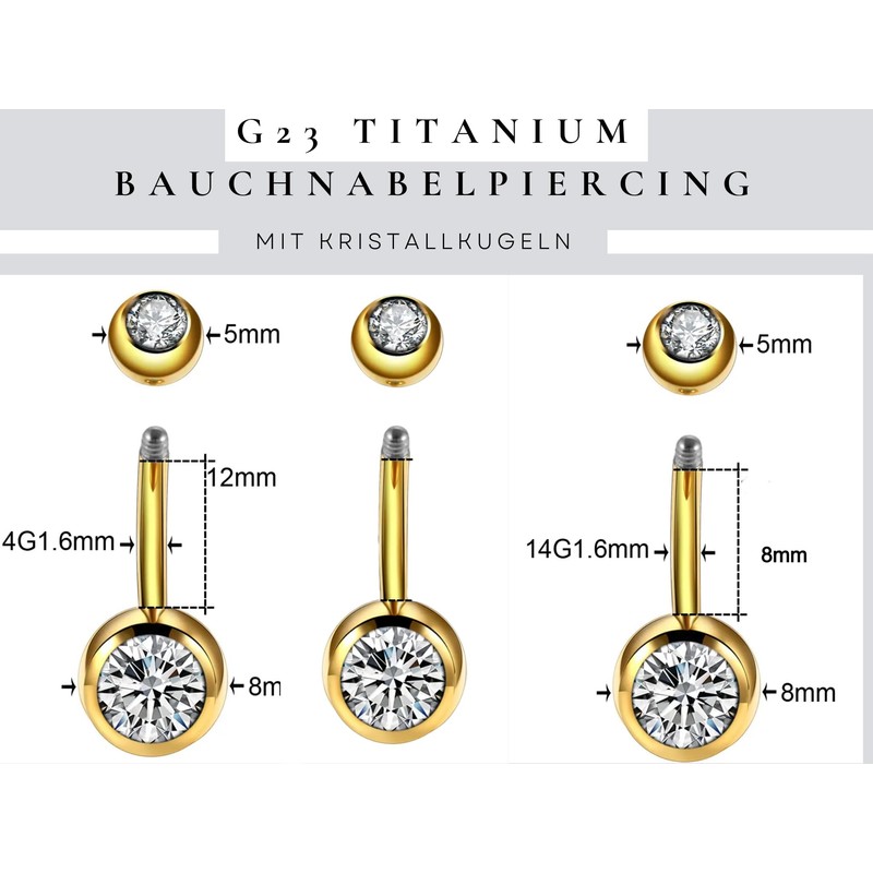 • High-quality 14G titanium: experience unparalleled quality with our belly button piercing made of high-quality titanium. These materials combine durability with attractive design.