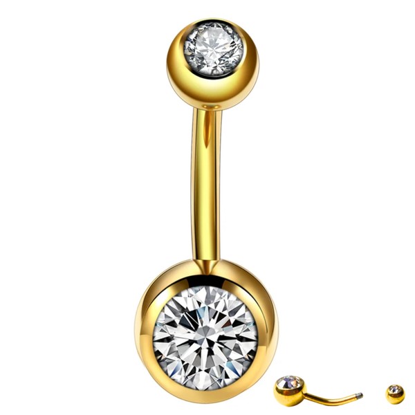 Medinah Belly Button Piercing 14G Titanium 8 mm 12 mm Bar Length, Bar Thickness: 1.6 mm CZ Balls, Belly Button Piercing Gold Belly Button Piercing Silver, Titanium