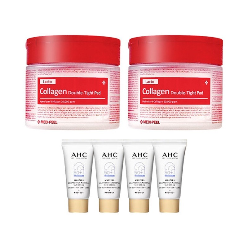 MediPeel Red Lacto Collagen Ampoule Pads 70 sheets x2 + AHC Sunscreen 7ml x4 / 메디필 레드락토 콜라겐 앰플 패드 70매 x2 + AHC 선크림 7ml x4