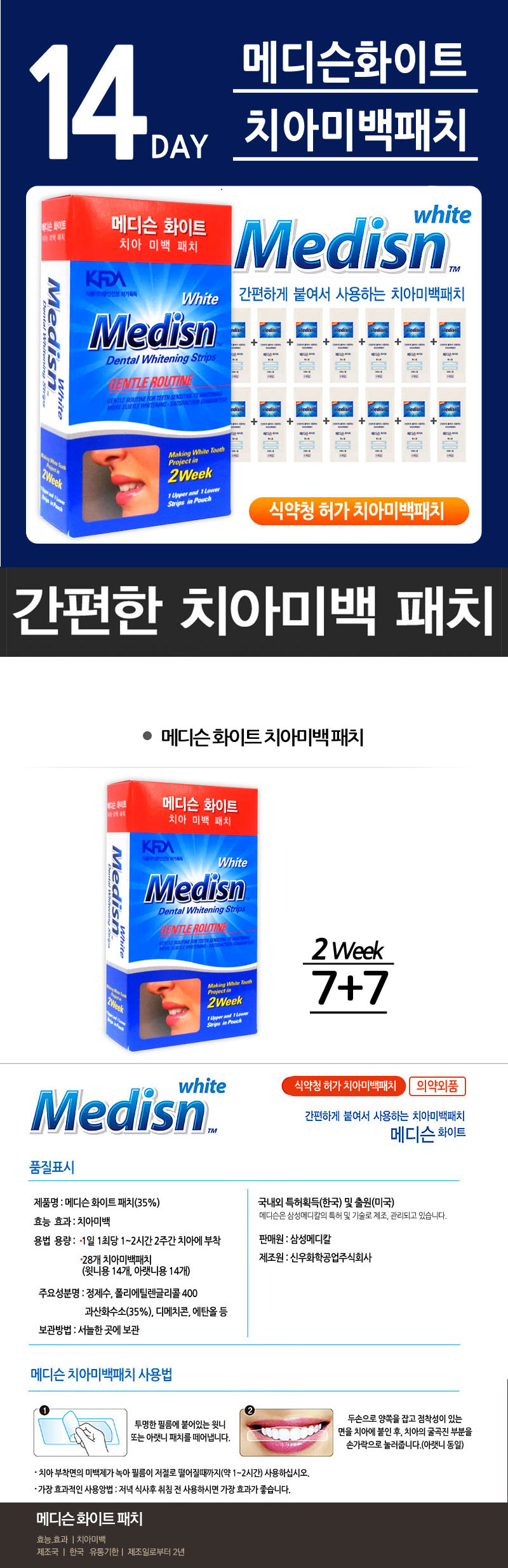 Medison White Teeth Whitening Patch Sticker 28 days worth (4 weeks worth) self-whitening / 메디슨 화이트 치아 미백 패치 스티커 28일분 (4주분) 셀프 화이트닝