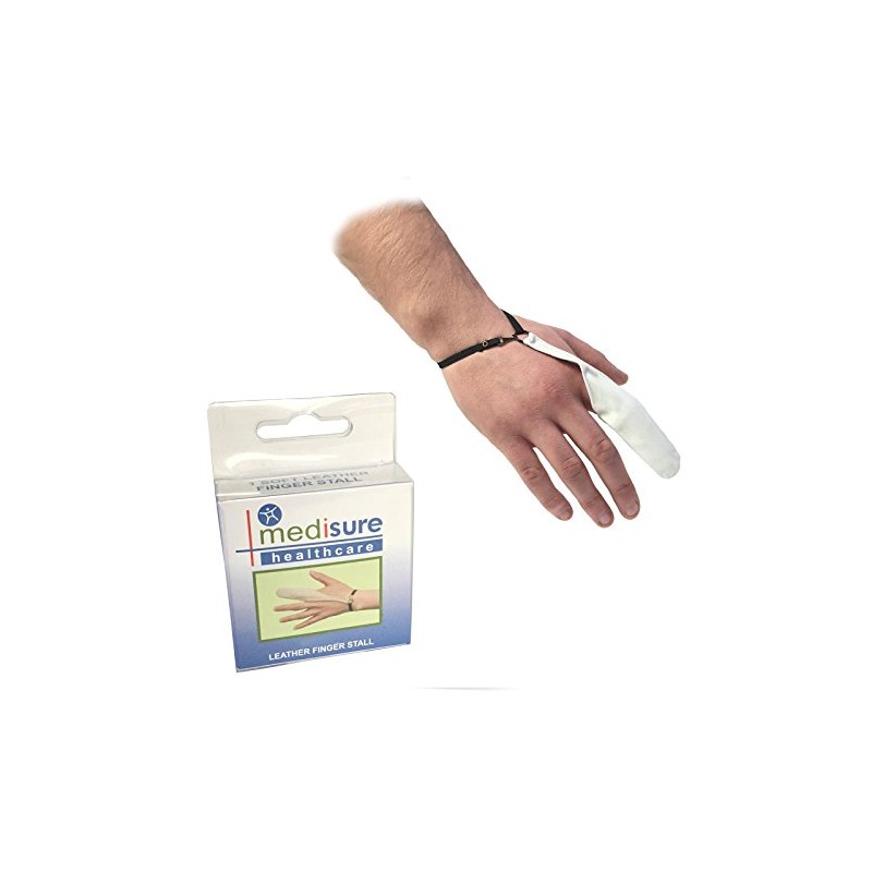 Medisure SIZE X-LARGE FIRSTAID PREMIUM ADJUSTABLE RE-USABLE MEDICAL PROTECTIVE WHITE LEATHER FINGER STALL