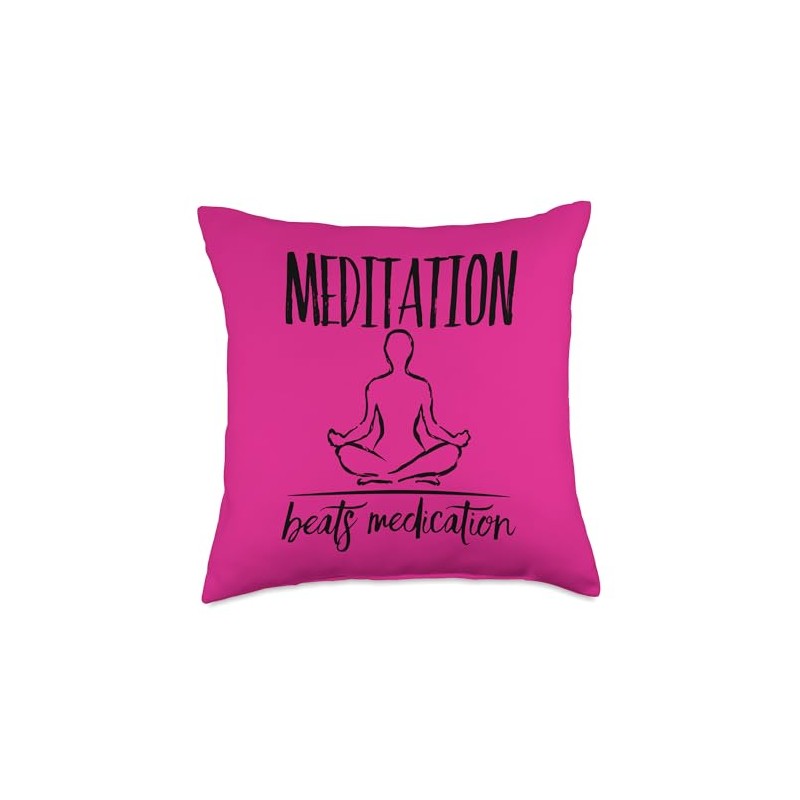 Meditation Beats Medication Positive Message Zen Yoga Design Throw Pillow