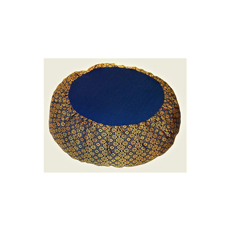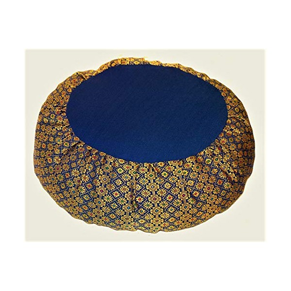 Meditation Cushion Zafu Pillow Buckwheat - Silk Brocade Royal Blue