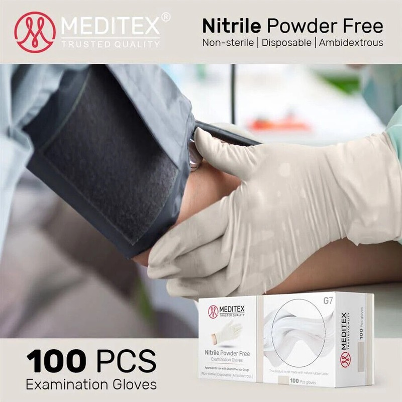 Meditex White Exam Disposable Nitrile Gloves (G7) - 4 Mil - Medical, Clinical (Box - Case) (Package type: Box (100pcs) Medium Size