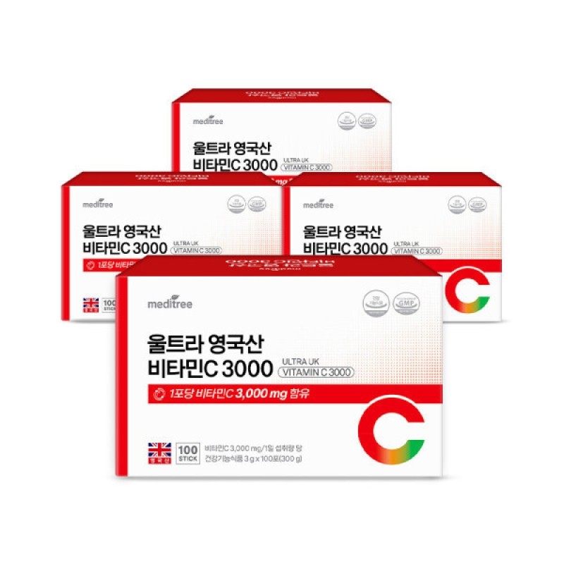 Meditree Ultra UK-made Vitamin C 3000 High-Concentration Vitamin C Powder 4 Boxes (400 Packets) / 메디트리 울트라 영국산 비타민C 3000 고함량 비타민씨 분말 4박스 (총 400포)