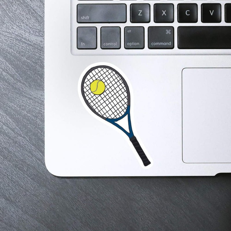 Medium 100mm 'Tennis Racket & Ball ' Permanent Sticker Decal for Cars/Windows/Bins/Walls etc (DW00090617)