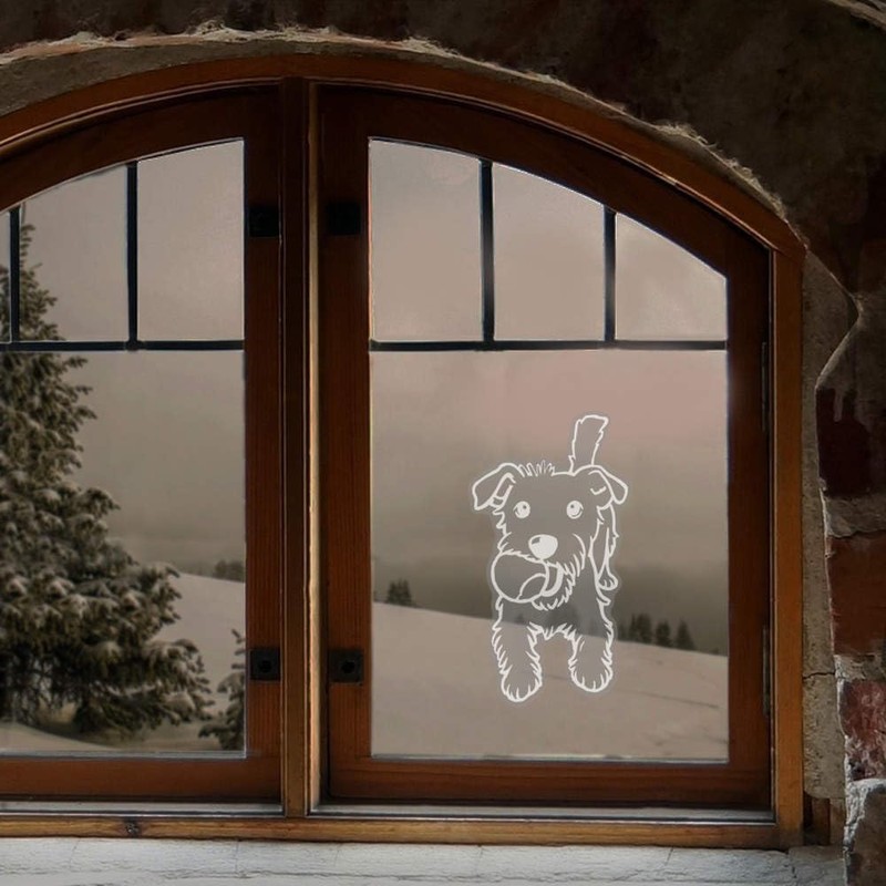 Medium 210mm 'Jack Russell with Tennis Ball' Clear Static Window Cling Sticker/Decal (White) (WC00127495)
