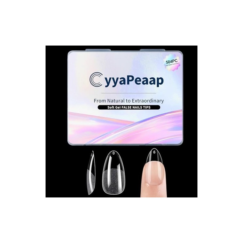 Medium Almond Nail Tips, 504Pcs Acrylic Soft Gel Fake Nails, Half Matte Full Cover Clear Press on Nails for Nail Extension, Manicure, Home DIY, Salon, 12 Sizes, Pre-Shaped Nails