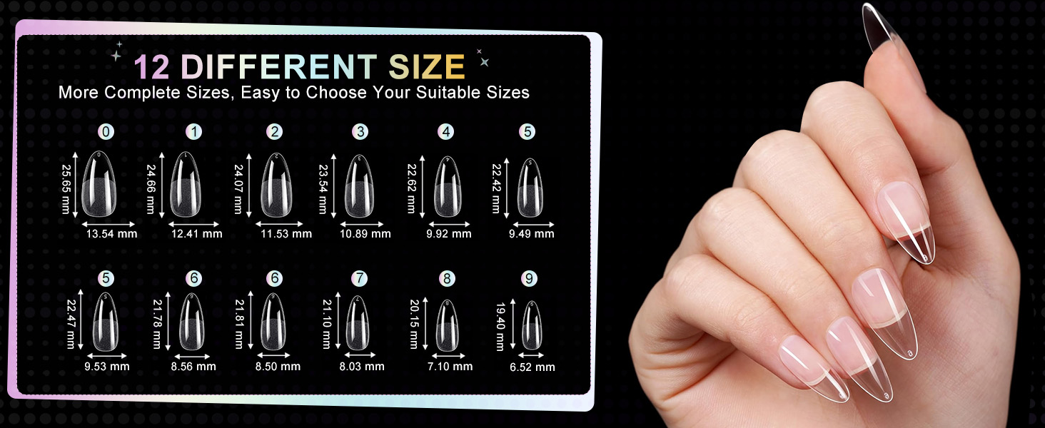 - 504PCS Tips in 12 Sizes: This set includes 504 nail tips in 12 pre-sorted sizes, designed to fit a wide variety of nail shapes and sizes. Perfect for both home DIY enthusiasts and professional nail artists, these nail tips offer a customized fit for everyone, ensuring a flawless and comfortable application.