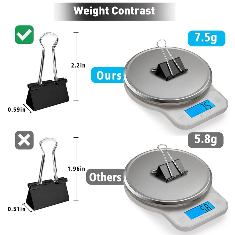 - Widely Used: Our clips are quickly and temporarily bind stacks of loose papers.And keep all foods air closed.