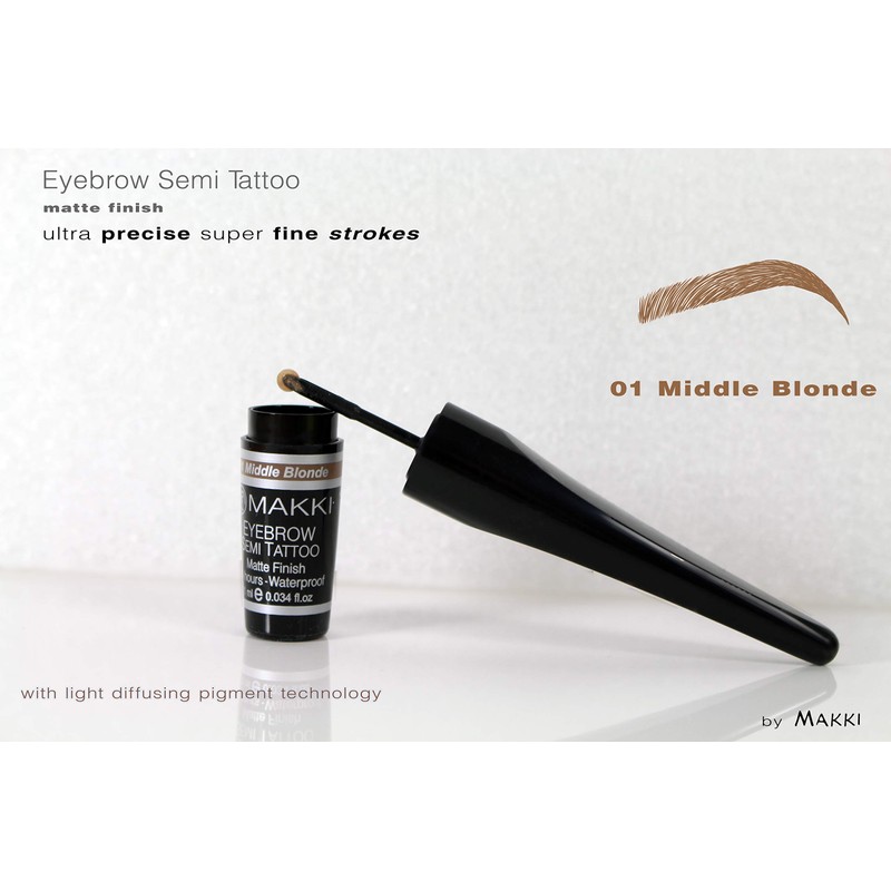 - Makki Eye Brow Semi Tattoo Matte natural surface and waterproof for ultra fine eyebrow strokes, no pencil or pen, light-diffusing pigment, nano disc applicator for super fine lines artistry. Makki's eyebrow semi tattoo allows you to create your own unique natural eyebrow look.