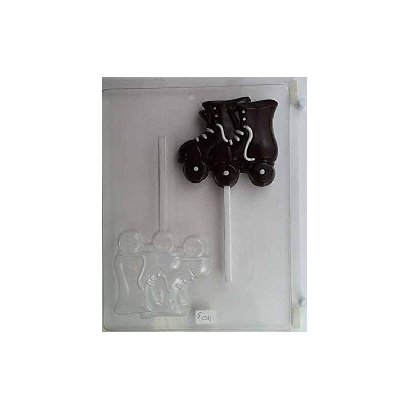 • Medium-Large Rollerskates Lollipop Candy Mold S031. Mold Type: Lollipop, Cavities: 2 Height: 3 1/4"Width: 3 9/16"Thickness: 9/16"