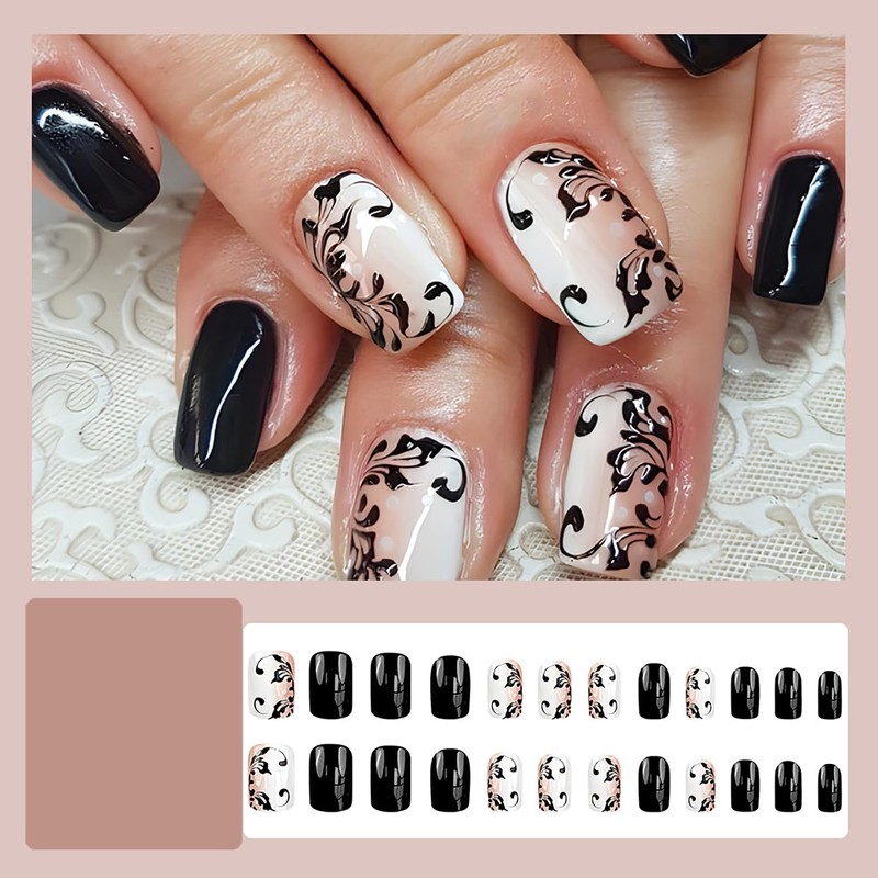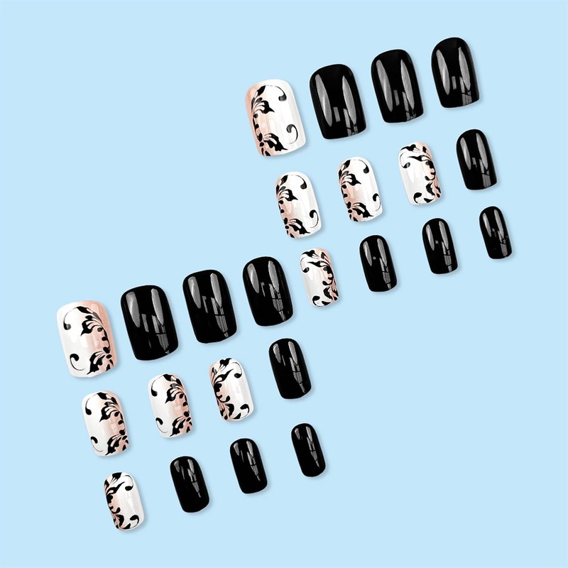 - Package: 24 pcs square press on nails,24 pcs jelly glue ,1 An alcohol bag,1 nail file and 1 small wooden stick,Meet the needs of tools required by your DIY