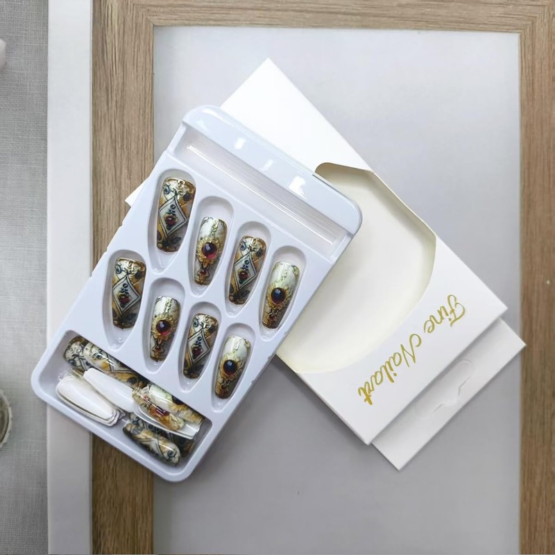 4.Retro Gold glue on nails trim according to the nail shape and length you want.