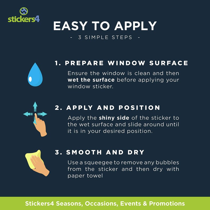 No Mess - Static cling means no adhesive, just a fine spray of water to apply which means no lasting damage to your windows and your window cling can be moved easily and re-used next year.