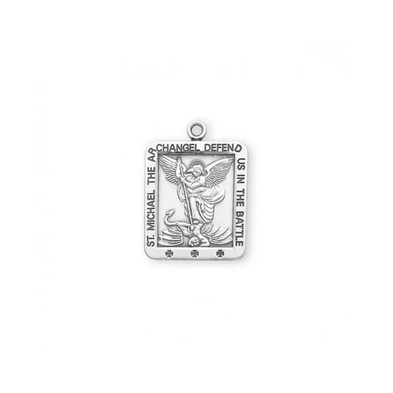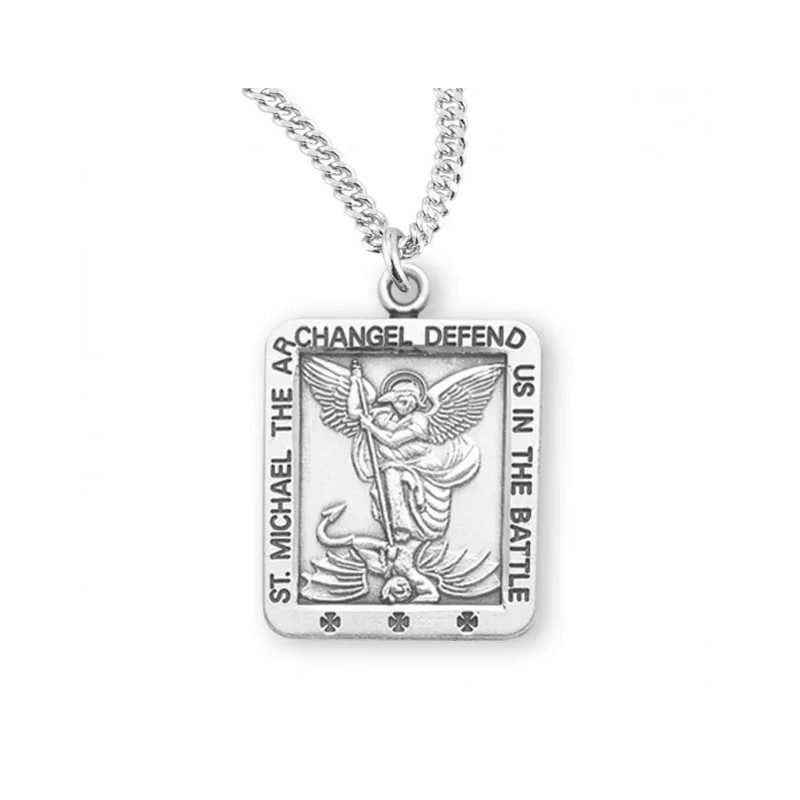 - This Necklace Features A Medium Square Saint Michael Pendant That reads "St Michael The Archangel Defend us in the Battle"