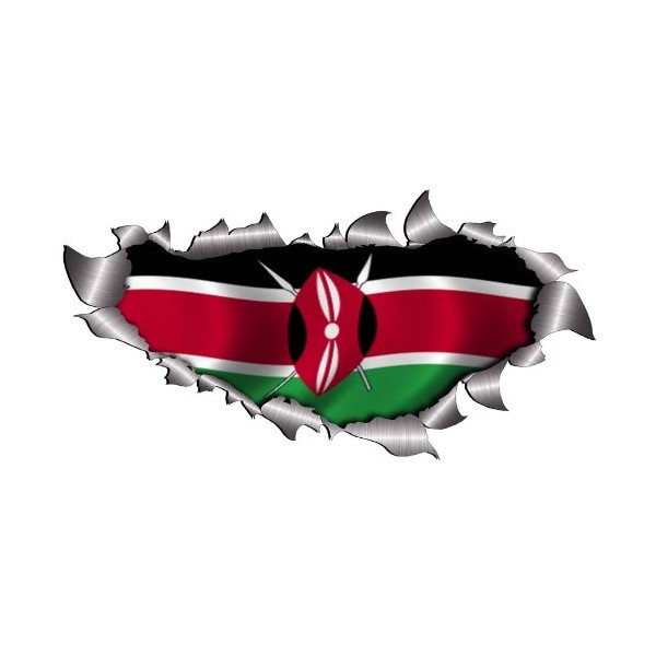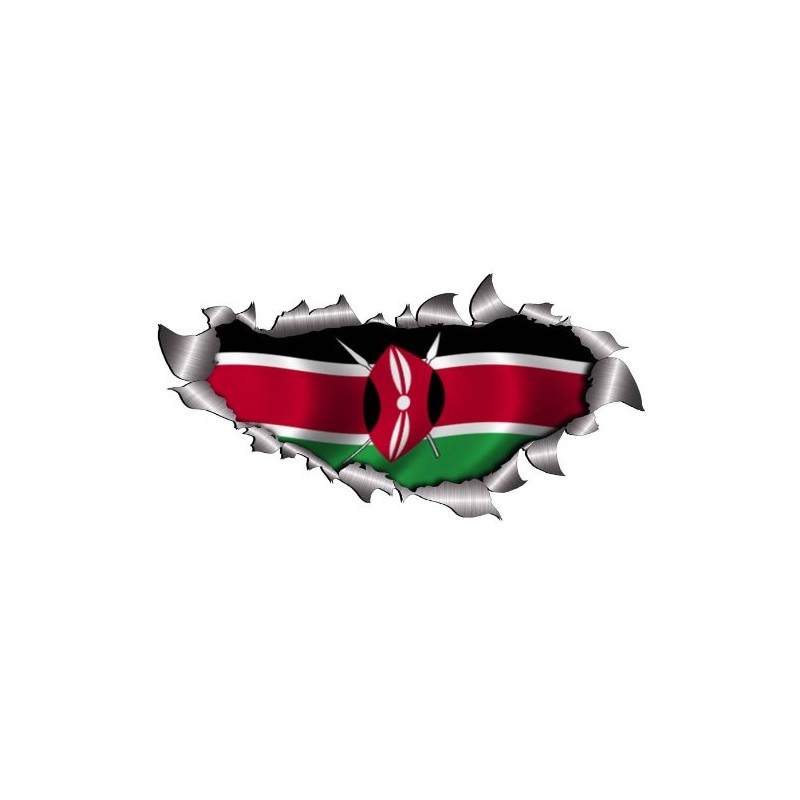 Medium Single Flag Of Kenya Metal Rip Open Sticker