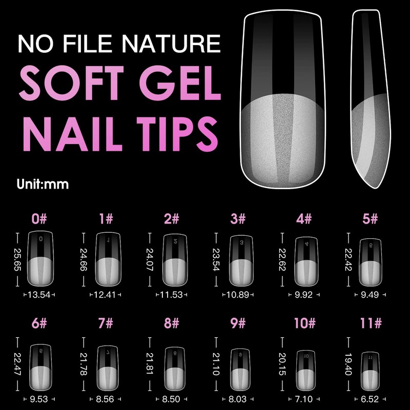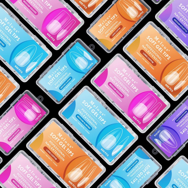 Melous Medium Square Soft Gel Nail Tips, 12 Sizes, 600 PCS, Full Cover, Matte Finish