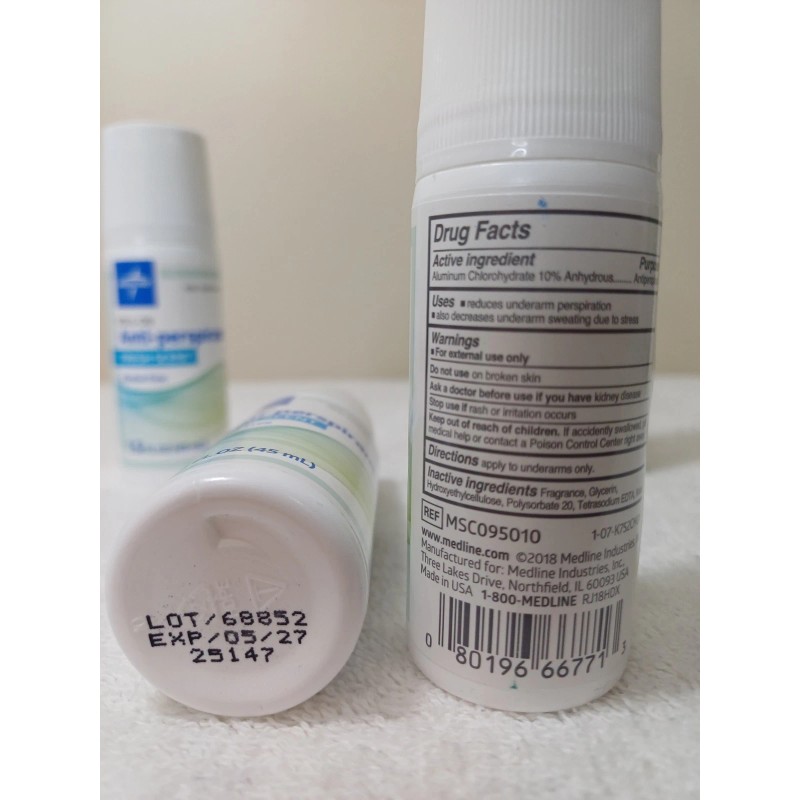 5 Medline Roll On Anti-perspirant Fresh Scent Alcohol Free 1.5 FL OZ EXP 05/27.