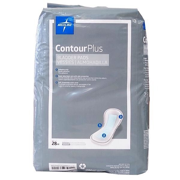 Medline Contour Plus Bladder Control Incontinence Pads Moderate Absorbency 28CT