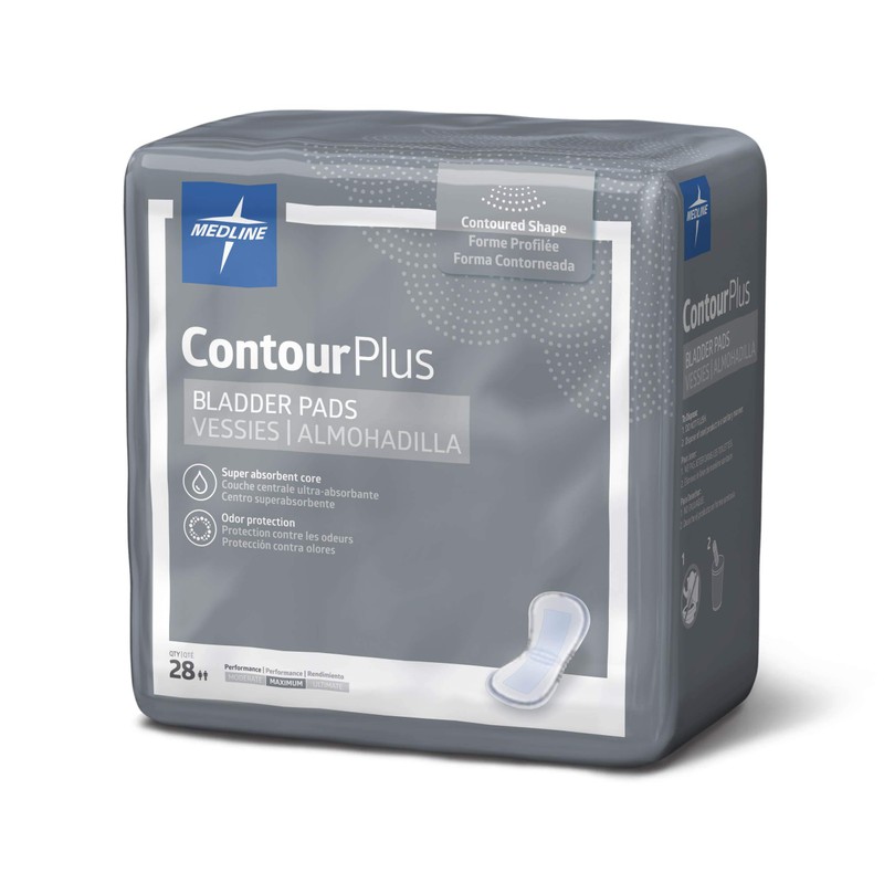 Medline ContourPlus Bladder Control Incontinence Pads, Maximum Absorbency, 6.5" x 13.5", 28 Count (Pack of 6)