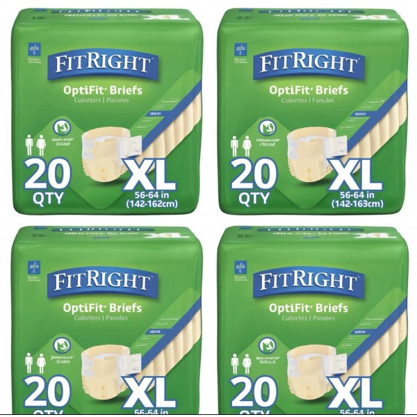 Medline FitRight Ultra Adult Diapers Incontinence Briefs with Tabs, Heavy X-Large 80 Ct