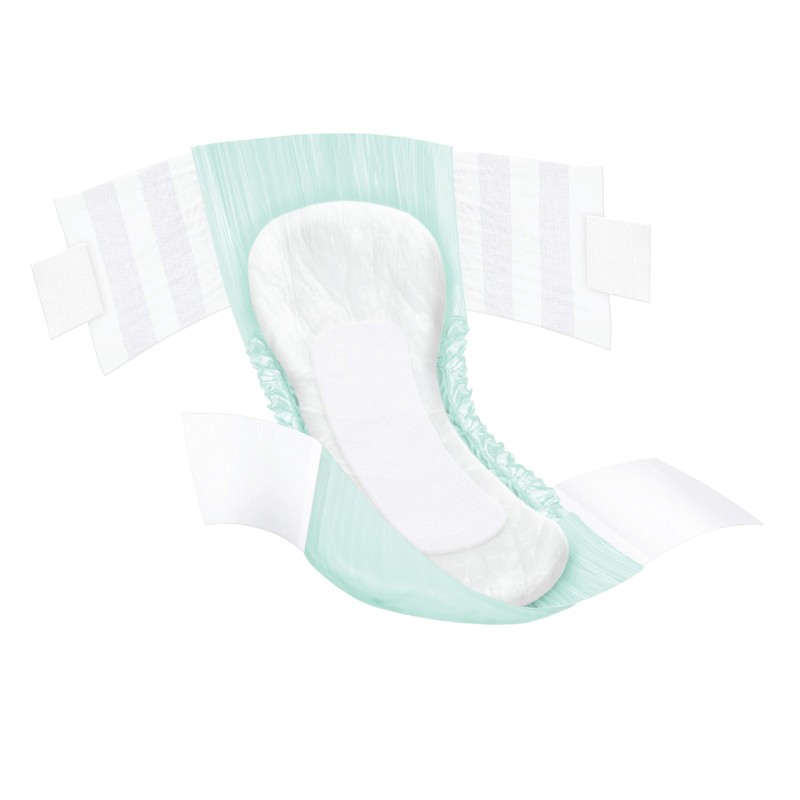 Unique FitRight adult diaper stretch design features soft materials, multiple refastenable tabs, anti-leak guards and a super absorbent core. 4D core ensures dryness in the incontinence products, locking in moisture away from the skin where it may cause irritation and skin damage. These disposable diapers for adults have stretch side panels for increased comfort. FitRight Stretch Extra Adult Diapers feature a moderate absorbency.