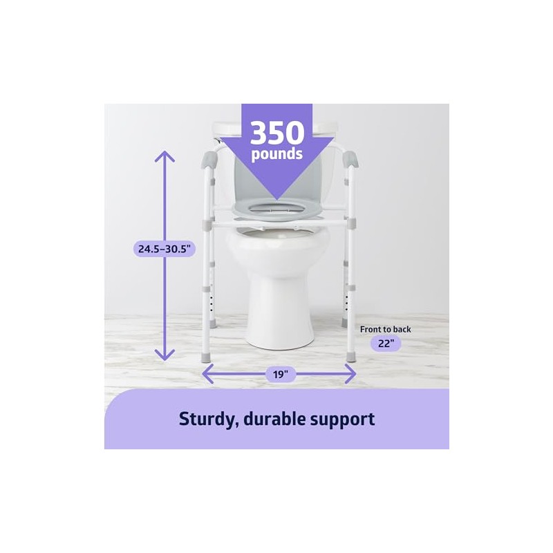 - SPACE-SAVING FOLDING FRAME AND EASY TO CLEAN—Assembled commode measures ”L x ”W x .-.”H. Commode folds down (”L x ”W x .”H) for easy portability; durable plastic snap-on seat makes cleaning quick and easy
