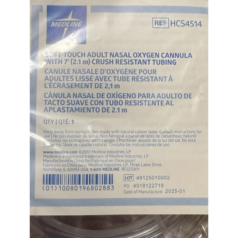 MEDLINE Lot 2 Adult Nasal Oxygen Cannula With 7’ / 2.1m Crush Resistant Tubing