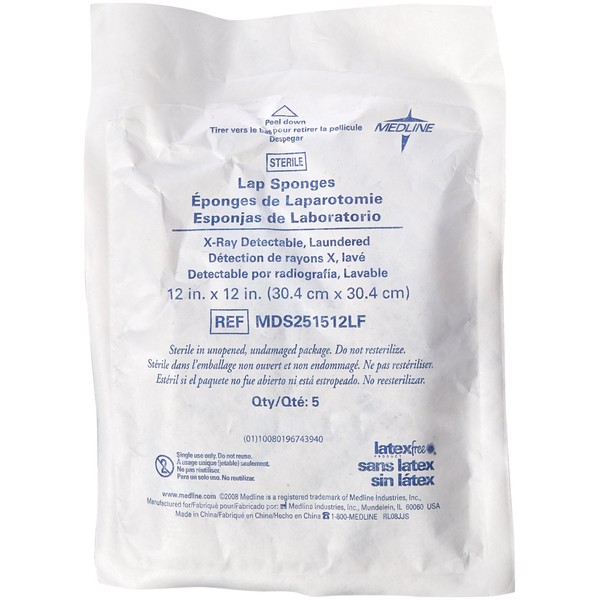 Medline MDS251512LF Sterile X-Ray Detectable Lap Sponges, Deluxe, 12" x 12" (Pack of 200)