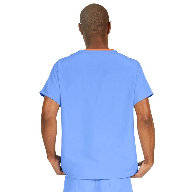 - Set-in short sleeves and double-needle seams for a polished look; reversible, durable V-neck scrub top with a color-coded neck bias and an easy fit