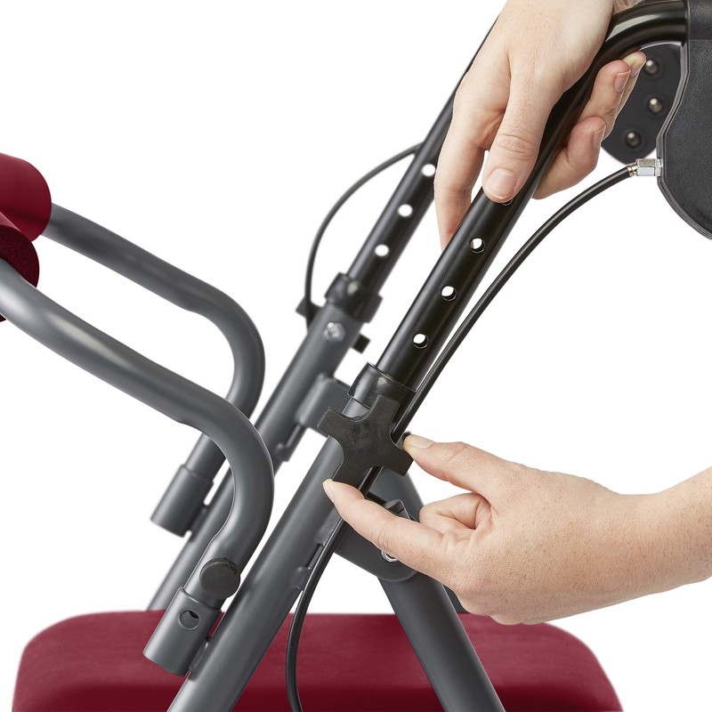 This Medline rollator walkers enable seniors or anyone with impaired mobility to safely walk with rolling support, or sit on the padded chair seat to rest. Unlike a typical walker, the rolling walker has wheels, instead of feet, so it rolls along smoothly with no lifting or dragging. When greater support is needed, or it’s time to sit down or stand up, hand brakes lock wheels securely for safety. When greater support is needed, or it’s time to sit down or stand up, hand brakes lock wheels securely for safety. When it’s time to move, squeeze the brake handles to unlock the wheels and you’re ready to roll. Special microban protection helps keep your rollator fresh and clean by inhibiting the growth of bacteria, mold and mildew continuously. (This product does not protect users or others against disease-causing bacteria.) For storage or transport, just lift in the middle of the seat and the rollator easily folds nice and flat, ready to fit in a car trunk or closet.