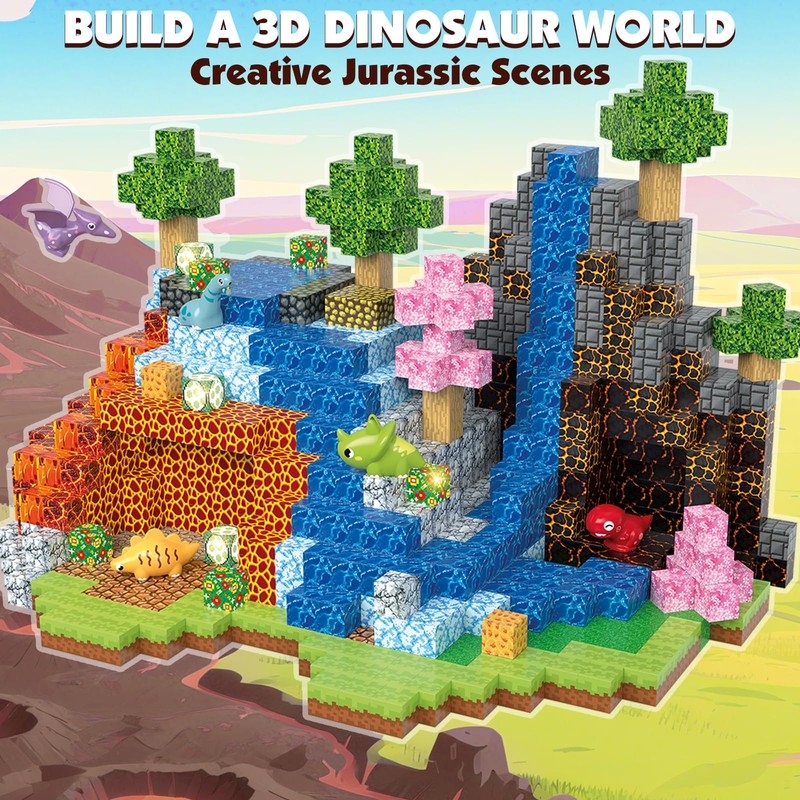 - Build Your Own Dino Scenes World: The 105PCS dinosaur toys magnetic blocks offer a variety of patterns and pieces for kids, sparking their curiosity and imagination while encouraging exploration. With endless creative possibilities in themed assembly, children can build their very own 3D dinosaur world and Jurassic scenes, enhancing their play experience.