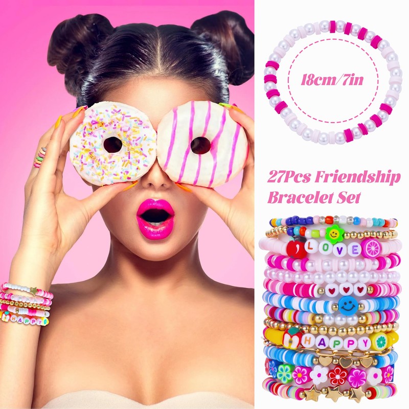 - Bracelet Set: One order includes 27 pieces colorful beaded bracelets in different style, our clay bracelet feature abundant pattern, beads and colors. The friendship bracelets including evil eyes, colorful vinyl clay, heart pattern, star, clay beads, gold beads and flower, etc. When you wear these cute taylor bracelets, making you look unique and attractive