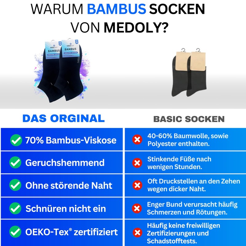 - Against sweat feet – real bamboo has an odour-inhibiting, is super soft and ensures a dry foot climate.