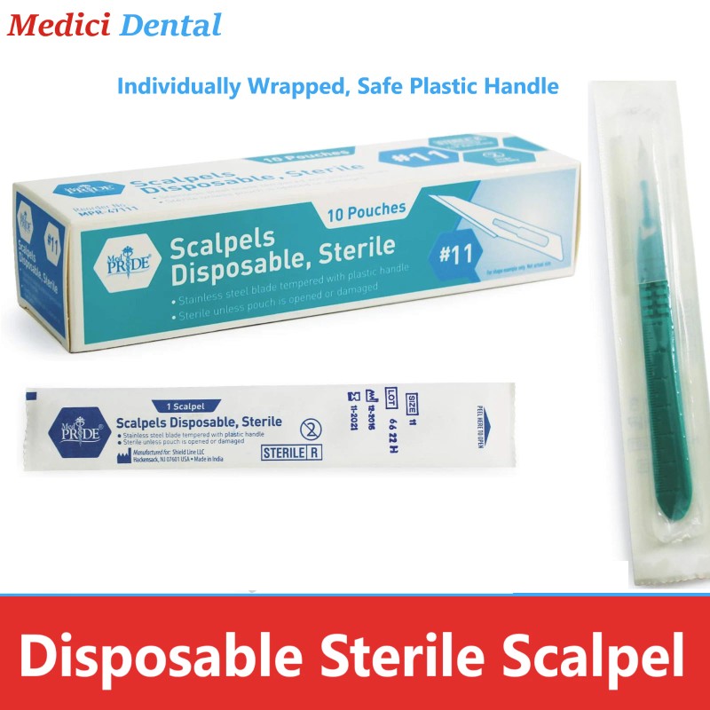 MedPride 10 PK DISPOSABLE SCALPELS #11-SINGLE USE - DISSECTING, SURGICAL, DERMAPLANING