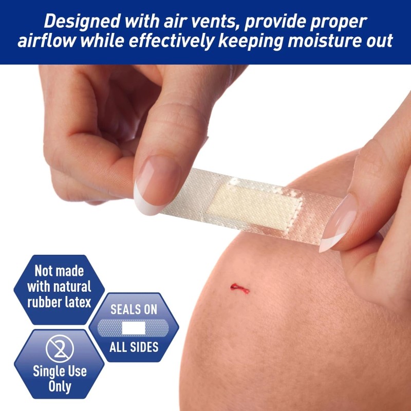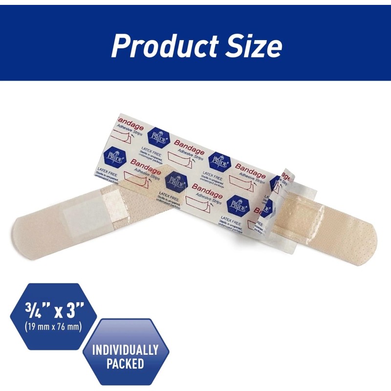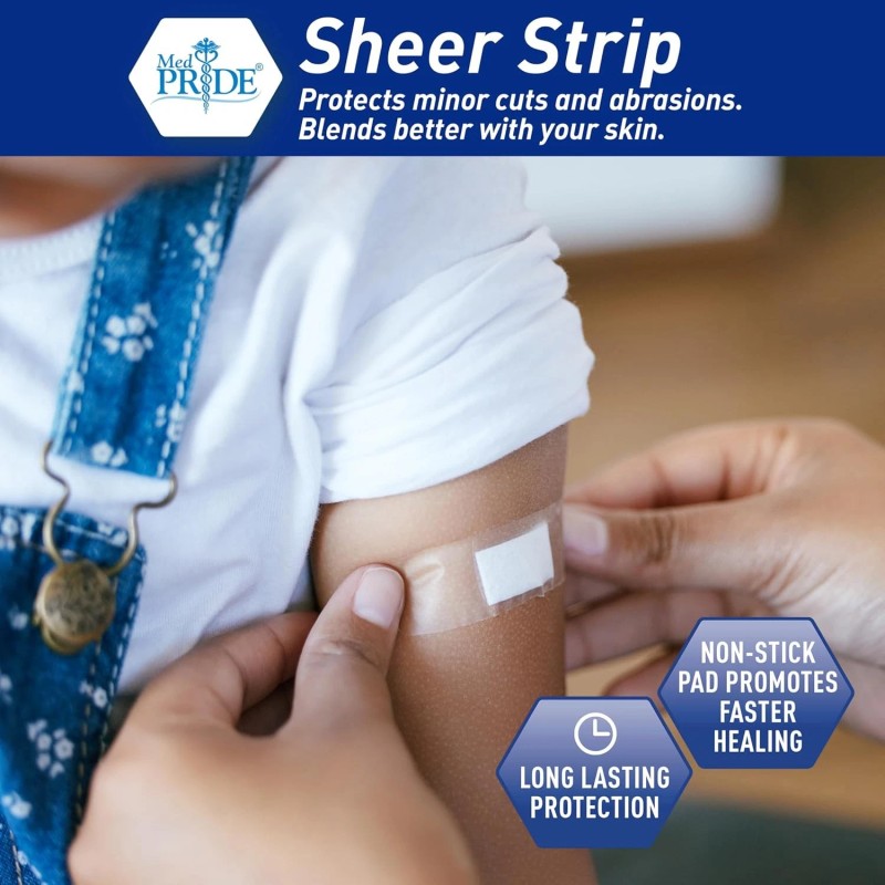 MedPride Sheer Adhesive Strip Bandages, BandAid 3/8" x 1.5, Sterile Bandage, 100/Box