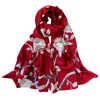 MEDUOLA Women's Scarf 180 x 90 cm Faux Silk Scarf with Colourful Carriage Flowers and Leaf Design Versatile for Any Season, rose red