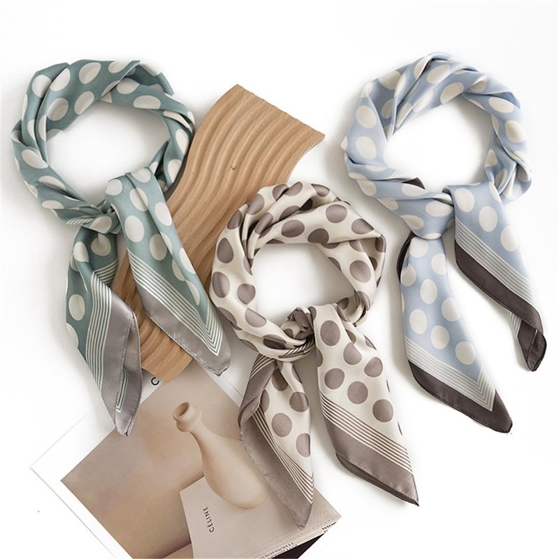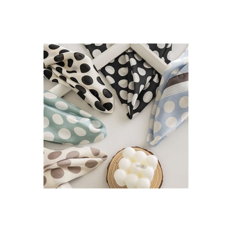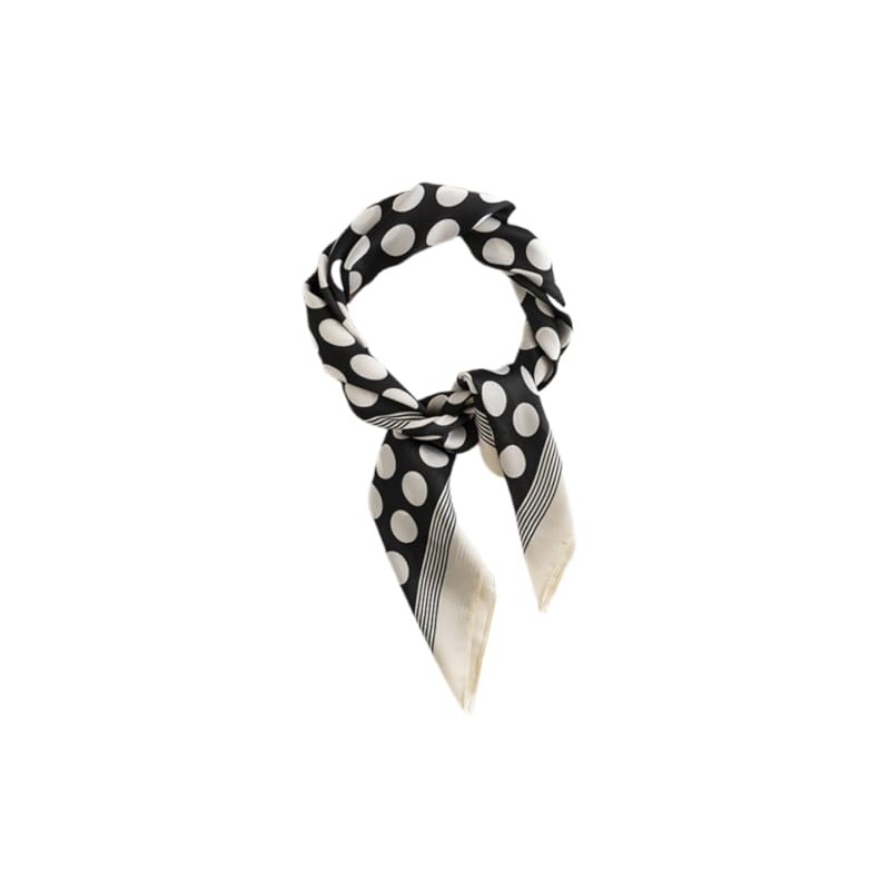 MEDUOLA Women's Scarf Made of Faux Silk Flowers and Various Patterns Print Scarf Elegant Accessory 70 cm x 70 cm Square Scarf, Polka Dot Black