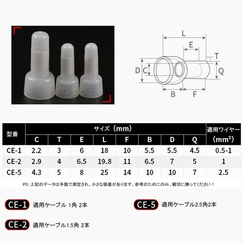MEDUSHASHA Crimp Terminal with Insulated Coating, CE Type, Terminal Industry, Crimp Terminal Cap, Replacement, Wiring Construction, Household Wiring, 250 Piece Set